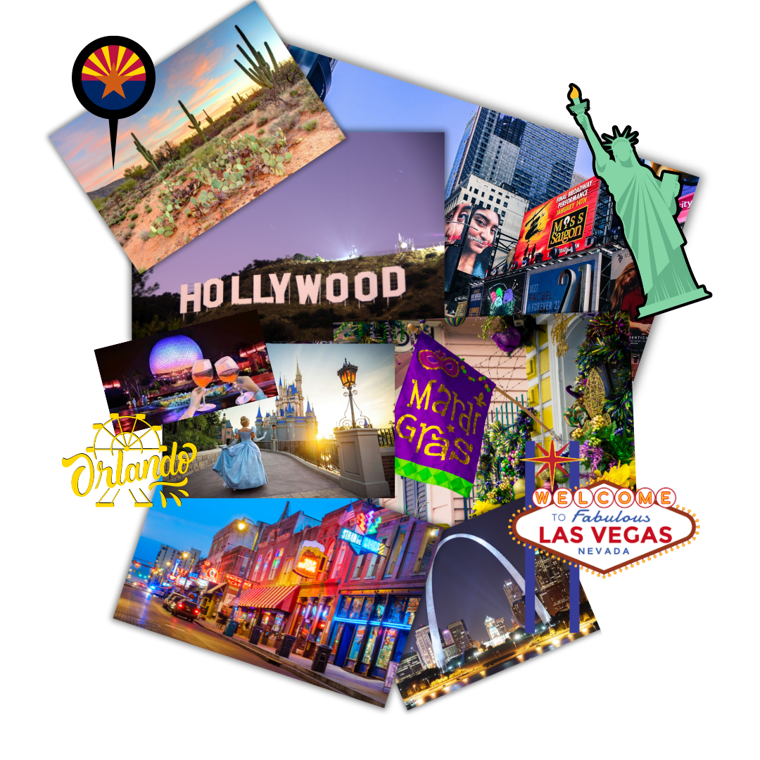 Scratch all 50 states off your bucket list! Experience New Years at Times Square, Take the family to Disney World, and more.